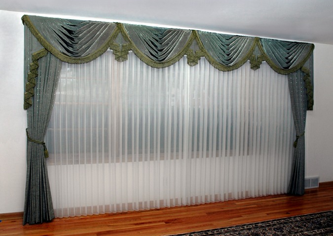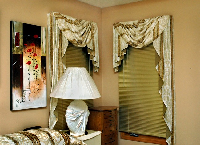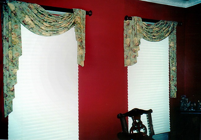 All window treatments shown were created by Kathie Johnson Draperies and Blinds